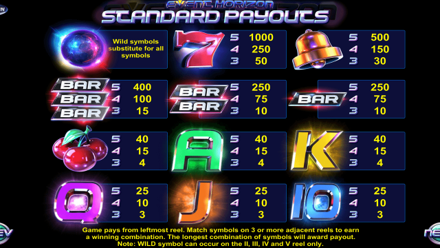 Виртуальный слот Event Horizon отличается следующими техническими характеристиками: