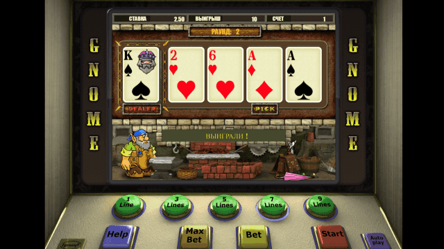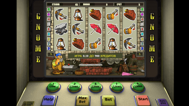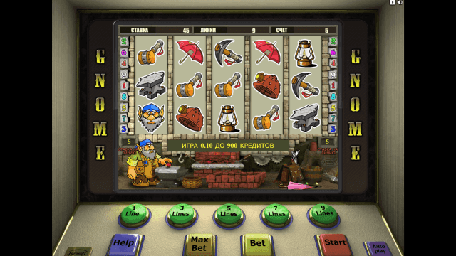 Онлайн-слот выпущен российским производителем программного обеспечения Igrosoft. Оформление игры выполнено в мультипликационном стиле. Качественная графика дополняется анимационными эффектами. Правила, геймплей и панель управления доступны на русском языке. Игровой автомат Гном предоставляет возможность выигрывать крупные суммы, получать призы в бонусной игре и приумножать выигрыши.
